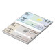 The note pad is just as pictured. The only reason I did not rated it a 5 star is because when I grabbed it it split in half. The sheets are good quality. The ink color is perfect. Keep in mind the sizing if you have bigger hand writing. Great quality image colors are bright no fading.