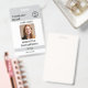 A modern minimalist personalised company employee ID badge with business logo, photo and details. Personalise with your logo, photo and details to create your own unique elegant white business badge.