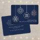 Send simply stylish holiday wishes to clients, customers and business associates with elegant company branded real foil holiday cards. All wording on this template is simple to personalise. The Christmas ornaments and logo on the front side of this card are printed with real metallic rose gold foil on a navy blue ombre background. (For best results, the uploaded logo image should be black with a white or transparent background.) The modern minimalist design features chic elegant snowflake ornaments and simple white classic typography. Available in both small quantities and bulk, these cards are suitable for small business entrepreneurs as well as corporate professionals. Business clients, family, and friends will love the sophisticated luxury of these personalised holiday greeting cards. Seasons Greetings!