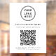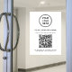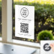 Modern white window cling sign for your company with your QR code for customers to scan for a list of your products, services, prices and other information. Add your logo, business name, phone number and street address in simple typography. Input your website URL address to generate the scannable QR code.