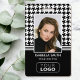 Create a stylish first impression with this chic and elegant ID badge. A modern template featuring the iconic houndstooth pattern, paired with contrasting stripes. Personalise with your name, job title, company logo, QR code and contact information. All of the text can be customised or deleted to suit your business needs. This classic design is ideal for many different workplaces and professions, including fashion stylists, beauty consultants, creative directors, interior designers, corporate professionals, retail staff, hotel staff, small businesses, conference name tags and more! Printed colours: black and white.