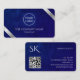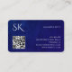 This design features elegant and professional luxurious royal blue leather textured QR code business card, with minimalist silver accents and customisable monogram. Best choice for small businesses luxury corporate branding set, businesses looking for premium, high quality office stationery for employees or executives.