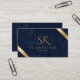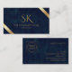 Company Logo Monogram Navy Blue Leather Business Card