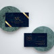 This design features elegant and professional luxurious navy blue leather textured business card, with minimalist gold accents and customisable monogram. Best choice for small businesses luxury corporate branding set, businesses looking for premium, high quality office stationery for employees or executives.
