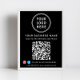 Modern black poster sign for your company. Upload your logo and your QR code for customers to scan for a list of your products, services and prices. Add your name, phone number, website or other information in simple white typography. Add your facebook and instagram user id's for customers to follow you online.