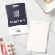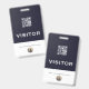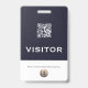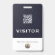 Keep your visitors and guests easily identified with this customisable company logo visitor badge. The blue and white design features a customisable logo and text that reads "Visitor" in a simple font. A QR code makes it easy for guests to access important information about your facility or event. The text at the bottom reminds visitors to please return the badge before leaving. This badge is perfect for businesses, hospitals, schools, museums, attractions, and more.