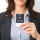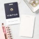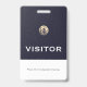 Keep track of visitors and ensure the return of your badges with this blue visitor badge featuring a brushed metallic gold seal emblem logo that can be customised for your brand with a customisable text banner. The design is eye-catching and professional, perfect for any business or event.