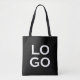 This simple yet sophisticated and professional custom tote bag features a black coloured background with a sample company of business logo placed in the centre. You can personalise the bag add your own custom company or business logo.