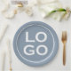 Company or Business Custom Logo on Dusty Blue Paper Plate