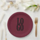 This sophisticated and professional party plate features a rich, merlot coloured background. A simple monogram text or image area appears in the centre. A sample logo is placed in the centre of the box. You can personalise these plates and add your own custom company or business logo.