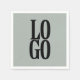 This sophisticated and professional cocktail napkin features a sage green coloured background. A simple monogram text or image area appears in the centre. A sample logo is placed in the centre of the box. You can personalise these napkins and add your own custom company or business logo.
