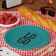 This sophisticated and professional party plate features a teal coloured background. A simple monogram text or image area appears in the centre. A sample logo is placed in the centre of the box. You can personalise these plates and add your own custom company or business logo.
