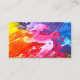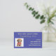 Purple business cards with place for a photo, or logo. Made as a knitting business card, with a square template to hold either an image or company logo. Text is white with a black shadow. Two lines at the top for business title and owner's name. Add more text, such as online locations, contact, address, to the bottom. That text aligns to the right. A painted design covers the back.