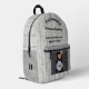 Backpack with grey grey stone textured look background. Business and promotional product. All text may be edited or removed. Professional easy to read script. Upload your logo, QR Code, or image.