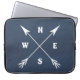 Compass illustration with arrows and north, east, south, west decoration on blue grunge background