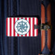 Nautical design with compass decoration on red and white striped background