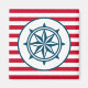 Nautical design with compass decoration on red and white striped background