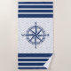 Compass on White with Blue Stripes Beach Towel