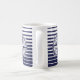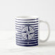 A nautical design with an ornate compass rose on blue and white stripes and a label with customisable text.