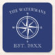 Compass Rose Nautical Family Name Navy Blue Square Paper Coaster