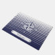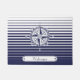 This doormat features a nautical design with an ornate compass rose on blue and white stripes and a label with customisable text.