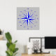 Poster with image of a compass rose in blue and white against a gray background.