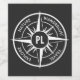 Compass star in black and white with emblems wanderlust, nature, travel and explore that are customisable so you can write your own texts. In the centre of the star is a personalised monogram. Perfect for nature lovers hikers and travellers.