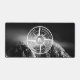 Compass star with black and white photograph of dramatic snowy mountains with milky clouds. With emblems wanderlust, nature, travel and explore that are customisable so you can write your own texts. In the centre of the star is a personalised monogram. Perfect for nature lovers hikers and travellers.