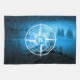Compass star with a photo of a fog in a frosty winter spruce forest with emblems wanderlust, nature, travel and explore that are customisable so you can write your own texts. In the centre of the star is a personalised monogram. Perfect for nature lovers hikers and travellers.