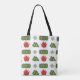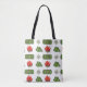 Tote bag features an all-over print of a sleeping bag, compass, campfire, and tent!