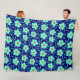 Competing Flowers - Turquoise and Red on Deep Navy Fleece Blanket
