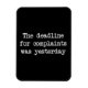 The deadline for complaints was yesterday. We are no longer accepting complaints at this time. Please refrain from complaining.