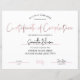 Faux Rose Gold Effect Completion Certificate, perfect for course completion award for professional beauty salon courses. You can use this luxury design certificate of achievement design with pink rose gold colour script font for any type diploma. This feminine certificate of completion is super versatile to suit any brand or business.