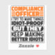 Funny Compliance Officer Sayings "Compliance Officer I Try To Make Things Idiot Proof But They Keep Making Better Idiots". Grab this Funny Compliance Officer design as a funny gifts for an awesome mum, dad or friend.