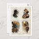 This postcard is a reproduction of a vintage illustration showing composite portraits of four trades: hatter, cooper, blacksmith, and joiner. Each profession is shown made out of the tools of the trade.