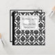 Composition Notebook Wedding Invitations - Looks just like a notebook with a printed fabric book spine. The front features a damask print. Centred near the top is an elegant box with "The Story of Us" printed over top a faint swan. The word "by" is located underneath, along with the bride & groom's full names. The back features a print of composition paper with a font that looks like handwriting. At the top are two elegant black swans for added decor. You can change the font, sizing, colours or even the wording to what ever you prefer. Use the orange customise button below the invitation demo. If you are satisfied with the font colour, style and sizing, just use the personalise feature to the right of the invite demo to get started. If you love the design, be sure to check out "natureprints" or "store" above to find matching RSVP cards, save-the-dates and more.