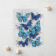 Vertical composition of realistic, blue and white morpho butterflies on grey textured background. Morpho blue butterfly.