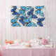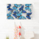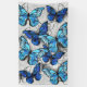 Vertical composition of realistic, blue and white morpho butterflies on grey textured background. Morpho blue butterfly.