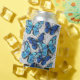 Vertical composition of realistic, blue and white morpho butterflies on grey textured background. Morpho blue butterfly.
