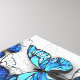 Vertical composition of realistic, blue and white morpho butterflies on grey textured background. Morpho blue butterfly.