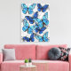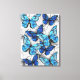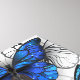 Vertical composition of realistic, blue and white morpho butterflies on gray textured background. Morpho blue butterfly.