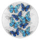 Vertical composition of realistic, blue and white morpho butterflies on grey textured background. Morpho blue butterfly.