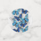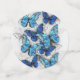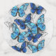 Vertical composition of realistic, blue and white morpho butterflies on grey textured background. Morpho blue butterfly.