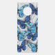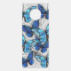 Vertical composition of realistic, blue and white morpho butterflies on grey textured background. Morpho blue butterfly.