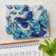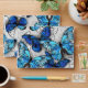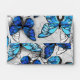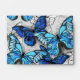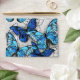 Vertical composition of realistic, blue and white morpho butterflies on grey textured background. Morpho blue butterfly.