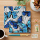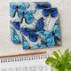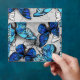 Vertical composition of realistic, blue and white morpho butterflies on grey textured background. Morpho blue butterfly.