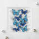 Vertical composition of realistic, blue and white morpho butterflies on grey textured background. Morpho blue butterfly.