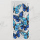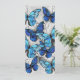 Vertical composition of realistic, blue and white morpho butterflies on grey textured background. Morpho blue butterfly.
