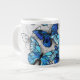 Vertical composition of realistic, blue and white morpho butterflies on grey textured background. Morpho blue butterfly.