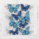 Vertical composition of realistic, blue and white morpho butterflies on grey textured background. Morpho blue butterfly.